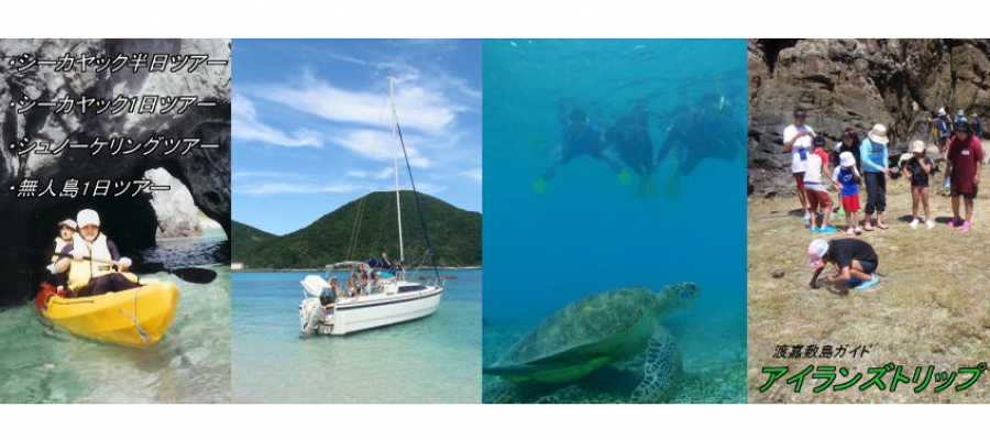 アイランズトリップは、ウミガメと泳ぐシュノーケリングツアーや無人島ツアー、シーカヤックツアーや電動アシスト自転車を使って渡嘉敷島を巡るサイクルツアー等の、海と陸のガイドツアーのショップです。